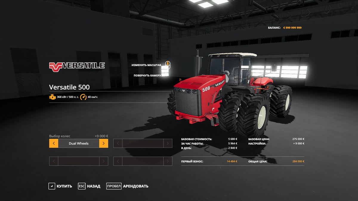 Канадский тяжелый трактор Versatile 500 для Farming Simulator 19 поможет вам справиться с самой трудной и комплексной работой на своем фермерском хозяйстве. Он обладает выдающимися характеристиками и детализированными текстурами. У него работает световая оптика и крутится рулевое колесо, однако интерьер все еще недоработан. Скорее всего, его исправят в следующих версиях. В магазине можно выбрать несколько типов колес.