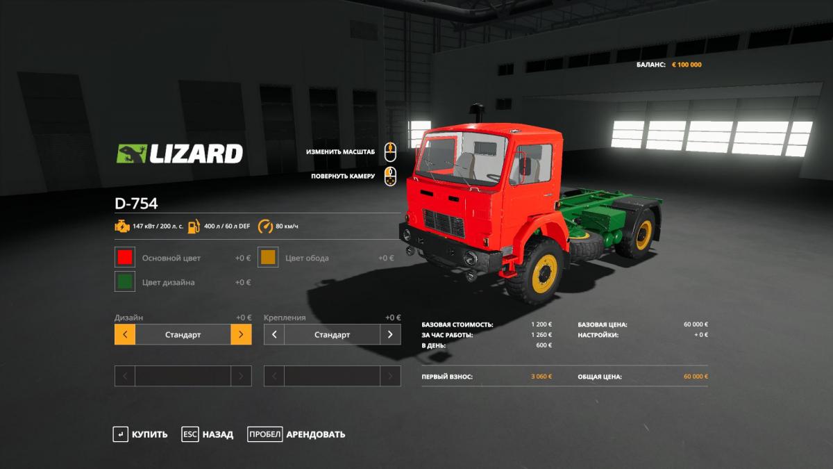 Грузовик D-754 для игры Farming Simulator 2019. В комплекте с грузовиком находится прицеп BP-9 (вместимость: 9750 или 15750 л), цистерна для навоза HTS-80 (8000 л) и прицеп для перевозки корма FMSZ-2KT (5700 л). Как и грузовик, они обладают несколькими вариантами дизайна.