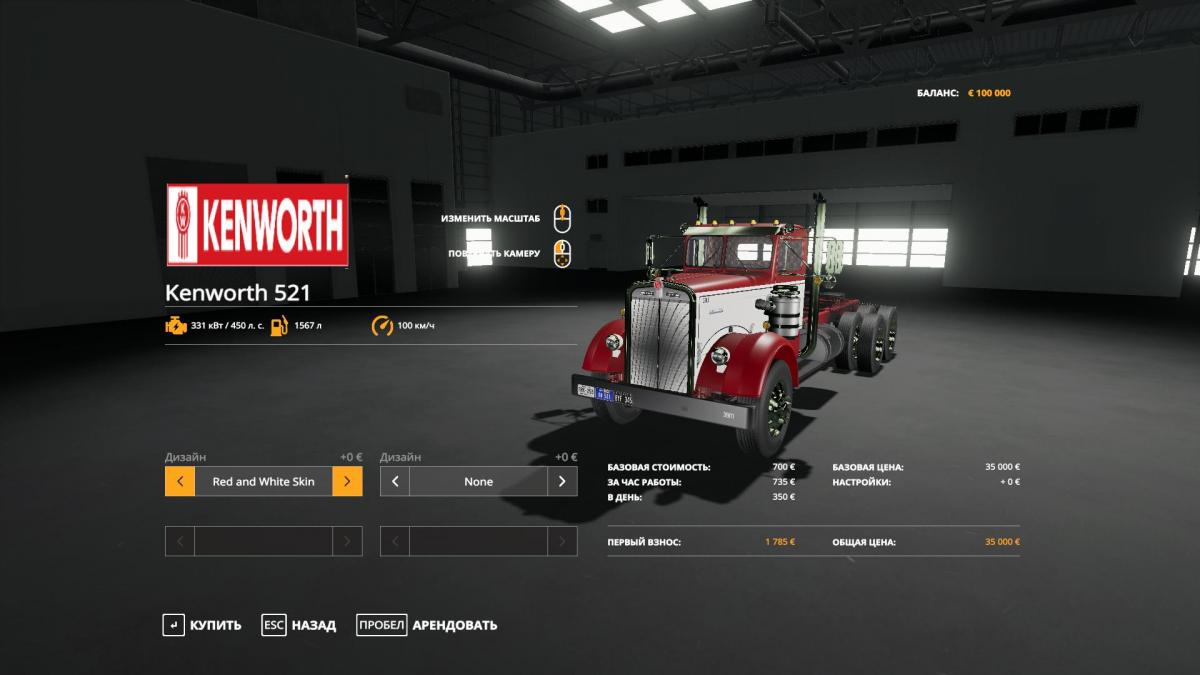 Американский тягач Kenworth 521 для игры Farming Simulator 19. Во время покупки в магазине можно менять расцветку кузова.